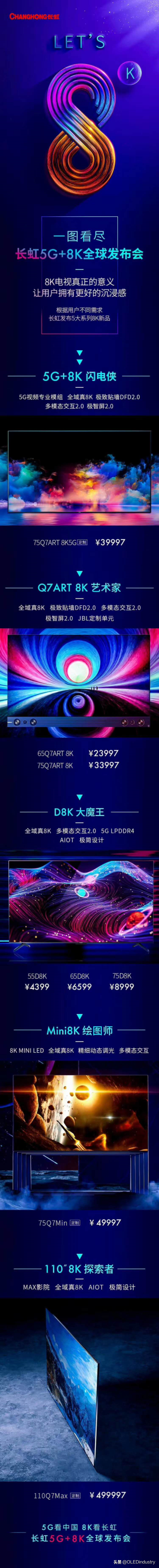 京东方的屏华为海思的芯片!最高售价近50万!长虹发布5G+8K电视