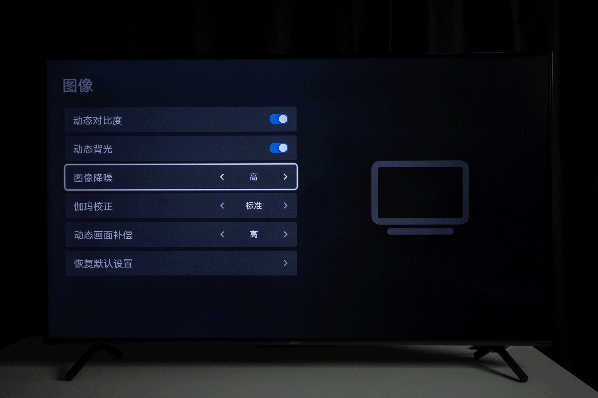 在观看片源的时候,遇到清晰度很差劲的片源时那真的是一种非常苦恼的事!智慧屏就解决了这个苦恼,把画面降噪开到最高可以做到提高片源的清晰度。完美的提高了视觉享受感!