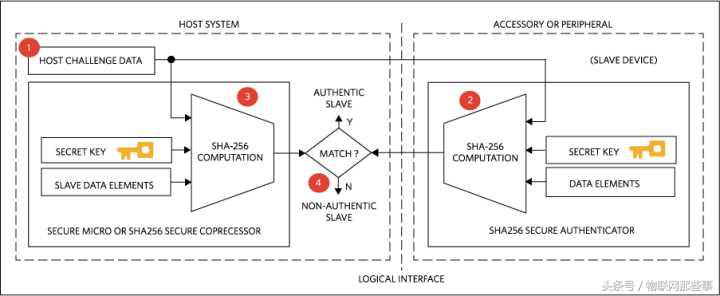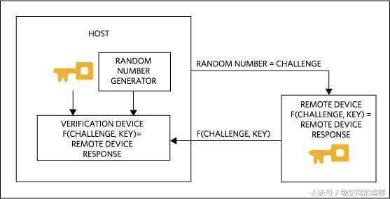 1. 基于对称算法加密的安全认证依赖于主机和设备之间的共享密钥。如下图所示: