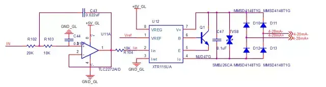 上述电路是一个整流电路,将输入的一定频率的脉冲整流成固定的电平电压,再用此电压控制4-20mA电流的输出电流。该电路功能类似一些DAC功能的接口。