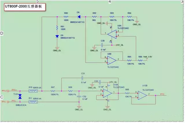 U5B(上图中下边的运放)为电压跟随器,故V1=V4;