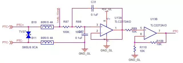 该电路应用时,要注意在输入端施加保护,可以并TVS,但要注意节电容对测量精度的影响,当然,如果在一些低成本场合,上述电路图可简化为下电路