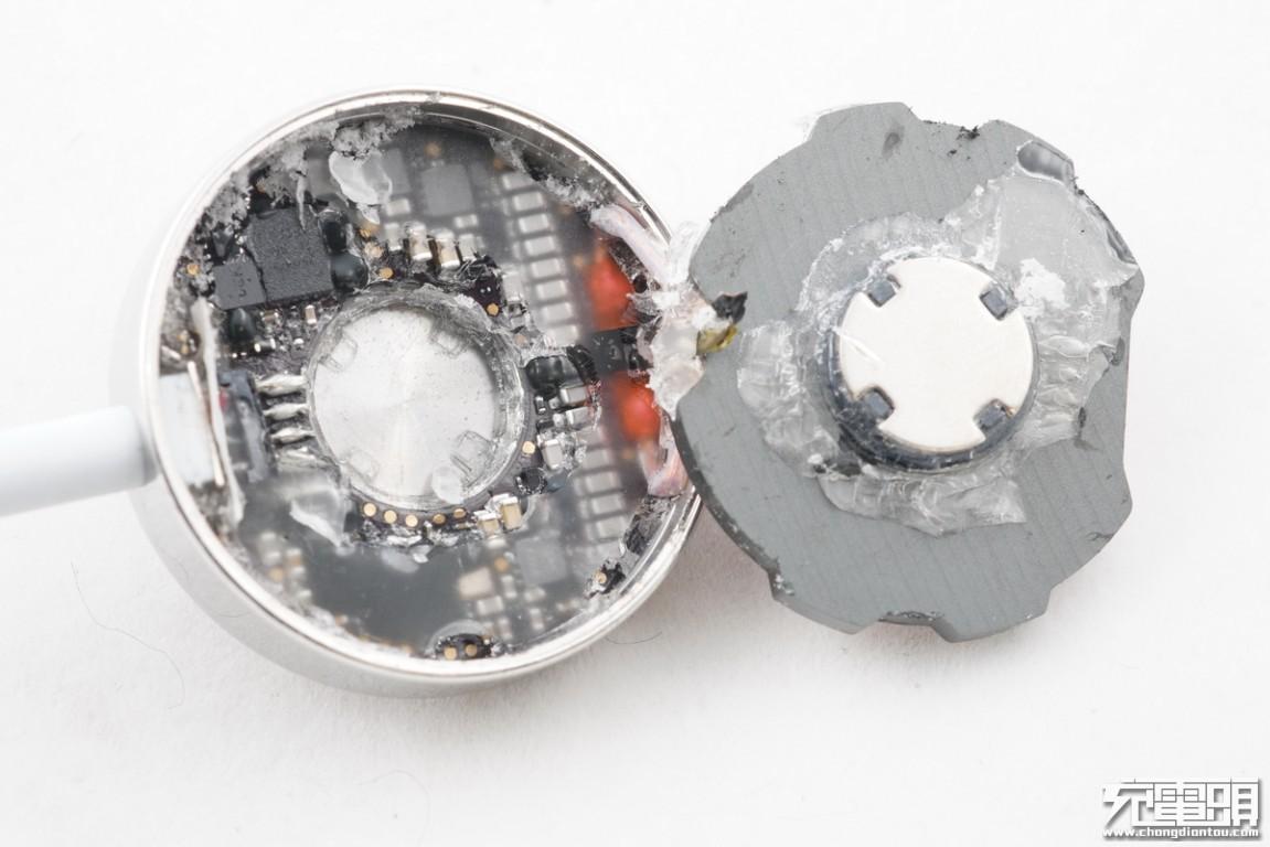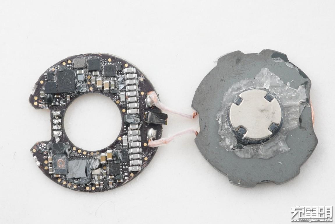 上面一块是磁铁和无线充电线圈,下面是PCB部分,中间灌满胶。