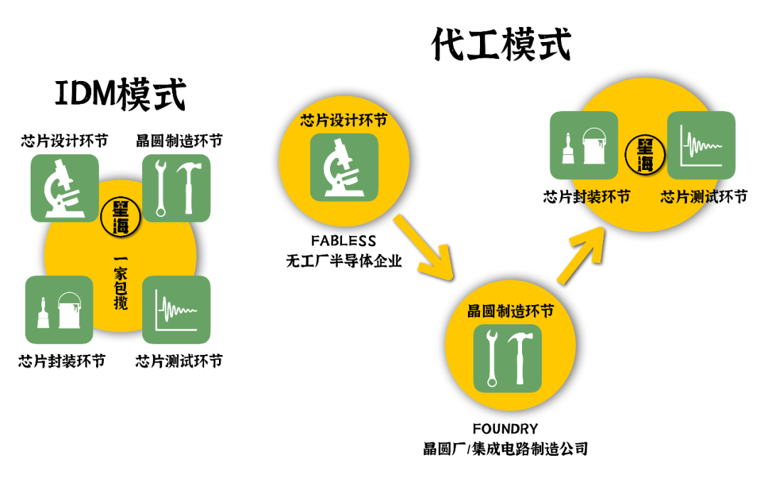 中国工程院院士、原中车株洲电力机车研究所有限公司(中车株洲)董事长丁荣军在接受媒体采访时回忆道,还记得第一次引进的时候,外国公司很明确地在技术转让文件上注明,传动和控制电驱动系统的IGBT技术不能转让。“当时我看到这个很伤心,但反过来也激发了我们去努力。” 2017年京沪线上的复兴号终于成功用上了中车株洲的IGBT模块,中国高铁自此实现了全面的自主化。从制造层面来谈,IGBT可以分为IDM模式(有晶圆厂)和Fabless模式(无晶圆厂)。IDM相较于Fabless而言产能、工艺都处于可控状态,核心技术掌握在自己手中,而这也意味着企业需要更充足的资金,以及更长时间的技术研发。