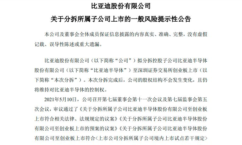 比亚迪半导体尽管已经与比亚迪汽车做了拆分,但二者的关系仍十分紧密。