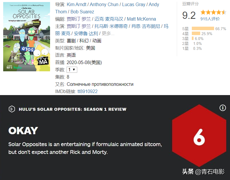 《外星也难民》上线后在烂番茄的新鲜度为96%;IGN6分;IMDB均分8.3,豆瓣评分也飙到了9.2。