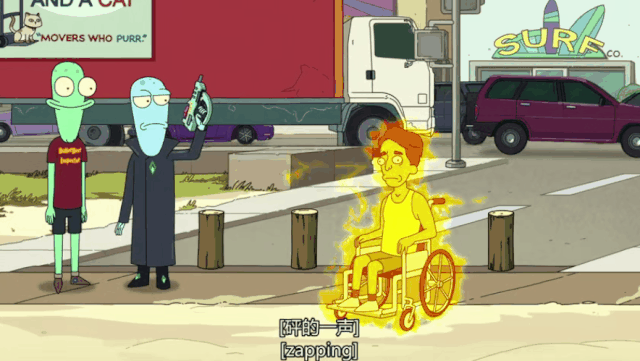 但相比于R&M,《外星也难民》少了些愤世嫉俗,多了些甜蜜 ,它把R&M中所有有趣又伴随着些低俗幽默的情节整合到一个独立的剧集中。