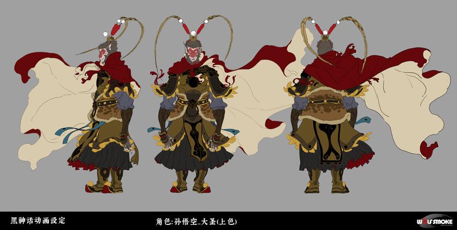 有细心的网友发现,短片中二郎神的发色与游戏中不同,“其实当时游戏科学给的参考就是白色,因为游戏中相关场景的光照环境下白发材质很难兼容,临时替换为黑色。”无言介绍,短片中约有一半以上的角色在游戏中没有出现,即使是二郎神、孙悟空等游戏中出现的角色,游戏科学会给出原画设计形象参考,但变成二维设计仍需要大幅调整修改,至于唐僧、沙僧、哪吒等没出现的角色,则由狼烟自主设计。