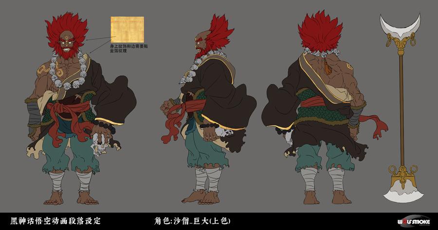 “游戏科学是很好的甲方,他们很尊重我们的美学理念,除了必要的部分,修改意见不多,大家的审美还是比较一致的。”她记得调整较多的是沙僧和唐僧的形象,“唐僧的年龄感调整得更大了些,沙僧一开始我们设计的脸部形象接近夜叉,现在更像人类。哪吒的造型也调整得更传统了。”