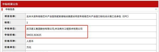 近日,武汉建工集团股份有限公司,中冶南方工程技术有限公司联合中标左岸大道车规级芯片产业园及配套基础设施建设项目车规级芯片产业园三标段设计施工总承包(EPC)。中标价54433.3636215万元,工期1080天。#头条创作挑战赛##武汉身边事##在头条看见彼此##我要上头条##我要上微头条#