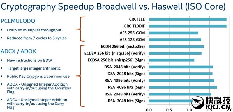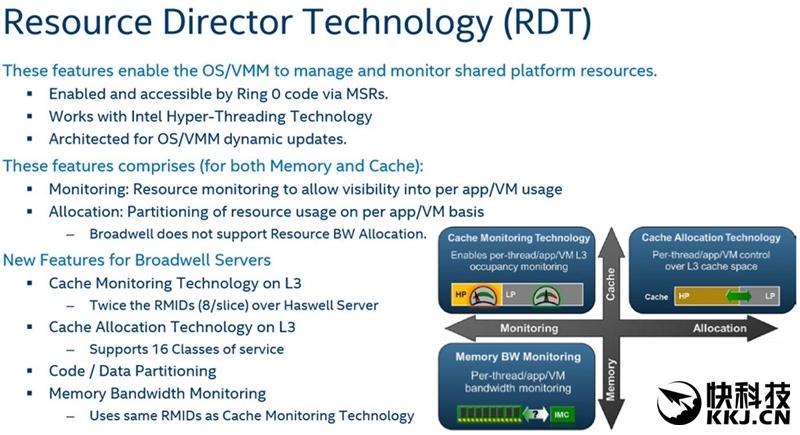 相比于上代Haswell-EP,Broadwell-EP工艺从22nm升级为14nm,核心数量最多从18个增至22个(逻辑线程数量从36个增至44个),三级缓存容量最大也从45MB增至55MB,另外内存频率支持从DDR4-2133提升为DDR4-2400,并支持3DS LRDIMM和写入CRC校验。