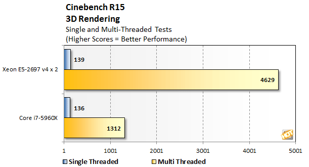 CineBench R15(渲染) :单线程几乎完全相同,毕竟Haswell、Broadwell架构上没太大变化,而多线程领先了2.5倍(72个VS 16个嘛)。