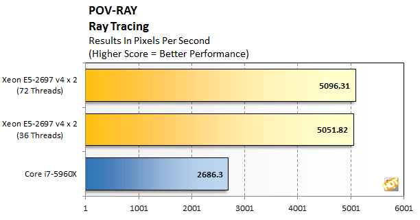 POV-RAY(渲染) :36个物理核心都用上了,但是不支持超线程技术。