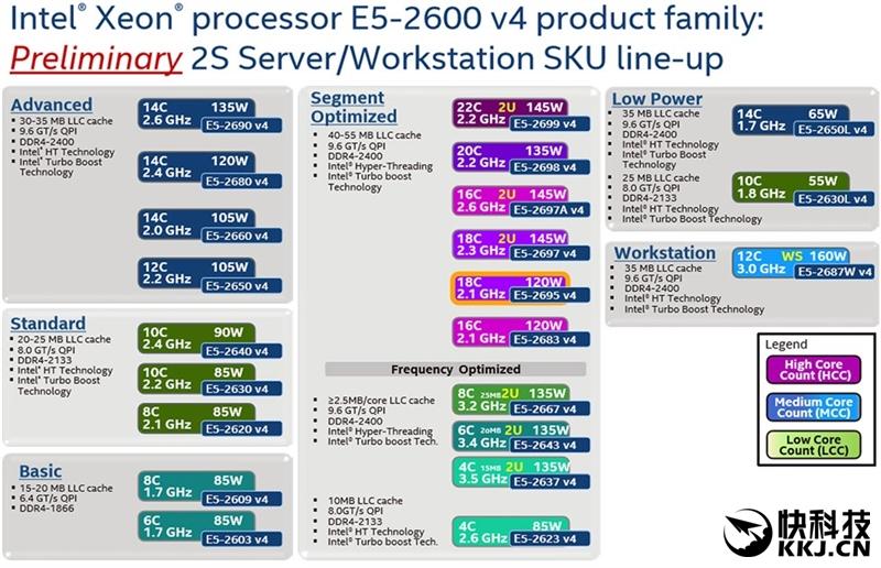 E5 v4系列总共有多达27款型号,并照例分为多个子系列,包括标准版、高频版、节能版、工作站版等等。