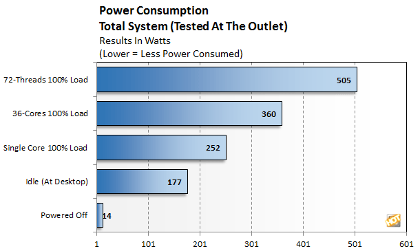 系统功耗 :单核心满载252W,36个物理核心满载360W,72个逻辑核心满载超过了500W。