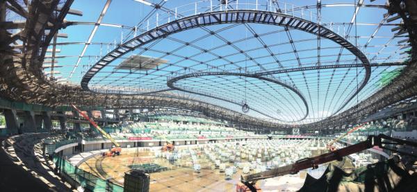 屋面索网结构的成功实施是攻坚克难的典型例证,在国家速滑馆建设团队口中,这张索网被称为“天幕”,这一阶段的建设施工被称为“编织天幕”。