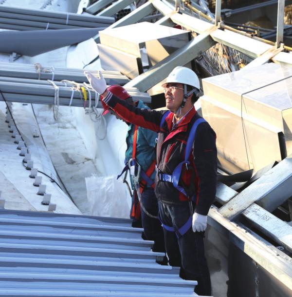 两年后,他依然清楚地记得那天出奇的冷,零下十几度还刮着风,但大家情绪高昂,因为连续数月的智慧加汗水艰辛付出后,冲锋号吹响了,“天幕”正式进入提升张拉阶段——“羽毛球拍”在地面组装完毕,开始往屋顶“提升”了。