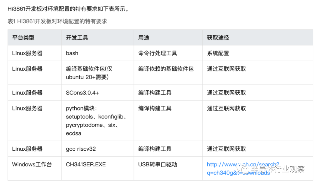 为了帮助推广鸿蒙系统,华为海思推出了一款名为Hi3861开发板。虽然华为海思并没有具体透露这个开发板使用的主芯片是什么架构的。但从其开发环境介绍中,有提到使用gcc riscv32。由此可以看到,华为这个Hi3861应该是RISC-V开发板。