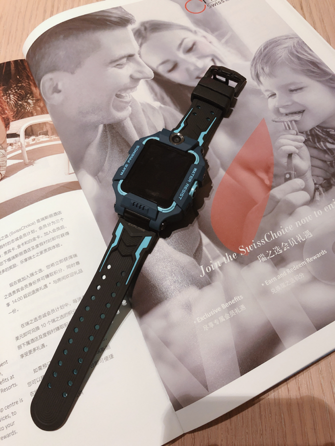 左右表框分别写着一串英语,左边写着make friends(交朋友),右边写着water resist(防水性,儿童手表,鼓励大家之间交朋友和用手表沟通,当然了,小孩子的手表,防水肯定也是必备的,Z6具有游泳级防水,能戴着游泳,这已经在Z5、Z3、Z2上。