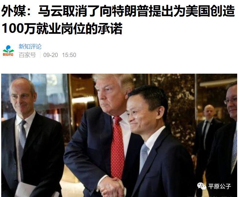 前天贸易战一升级,马云和阿里巴巴就宣布取消了在美国创造100万个就业岗位的计划,这个承诺,本来是马云两年前和美国总统特朗普见面的时候谈好了的。