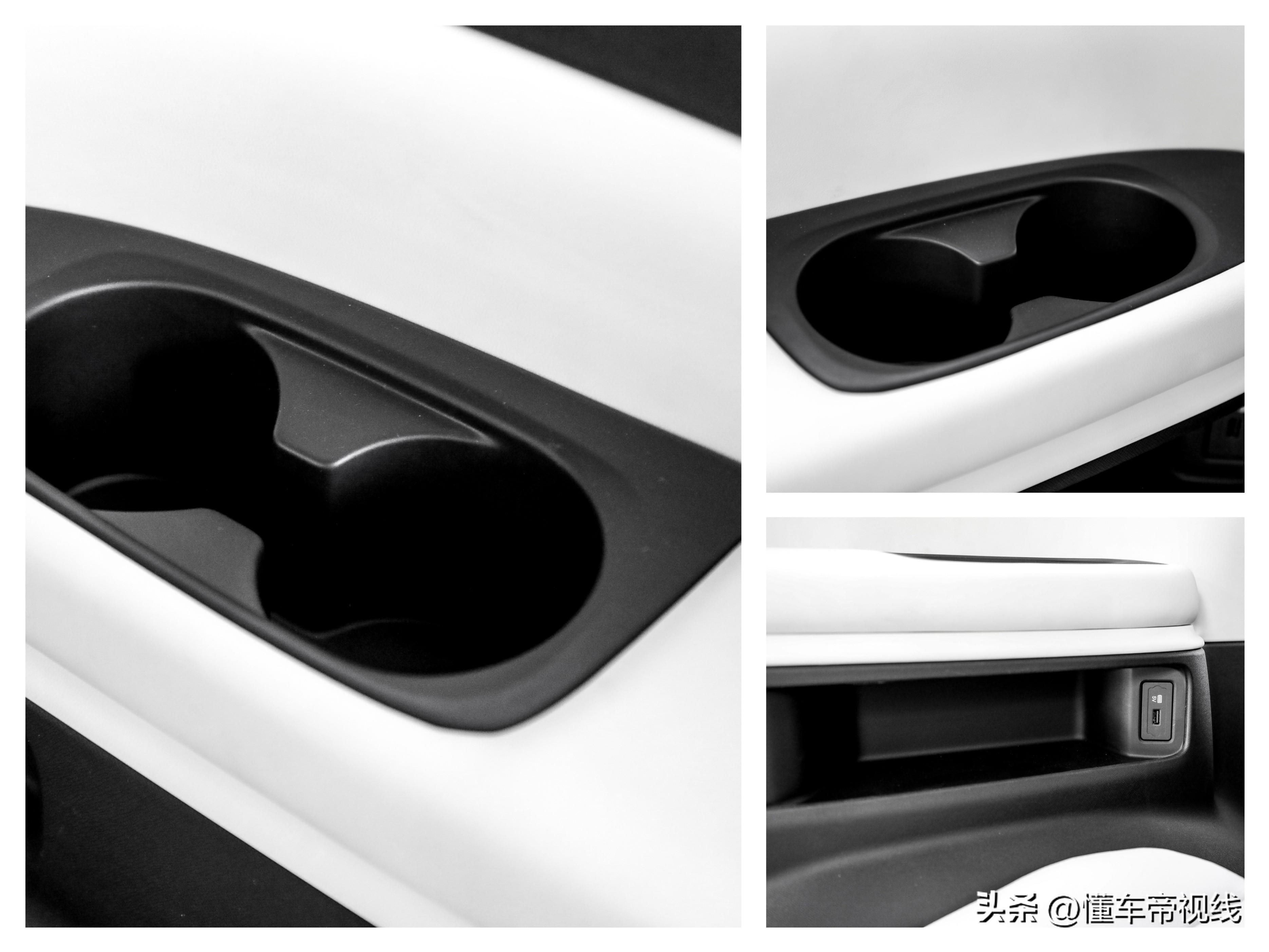 第三排储物表现相对常规一些,两侧设计了杯架以及充电接口,位于左侧杯架下方还设计了开放式储物槽,但另一侧就仅保留了充电接口,对于右侧乘客来说体验会稍差一些。