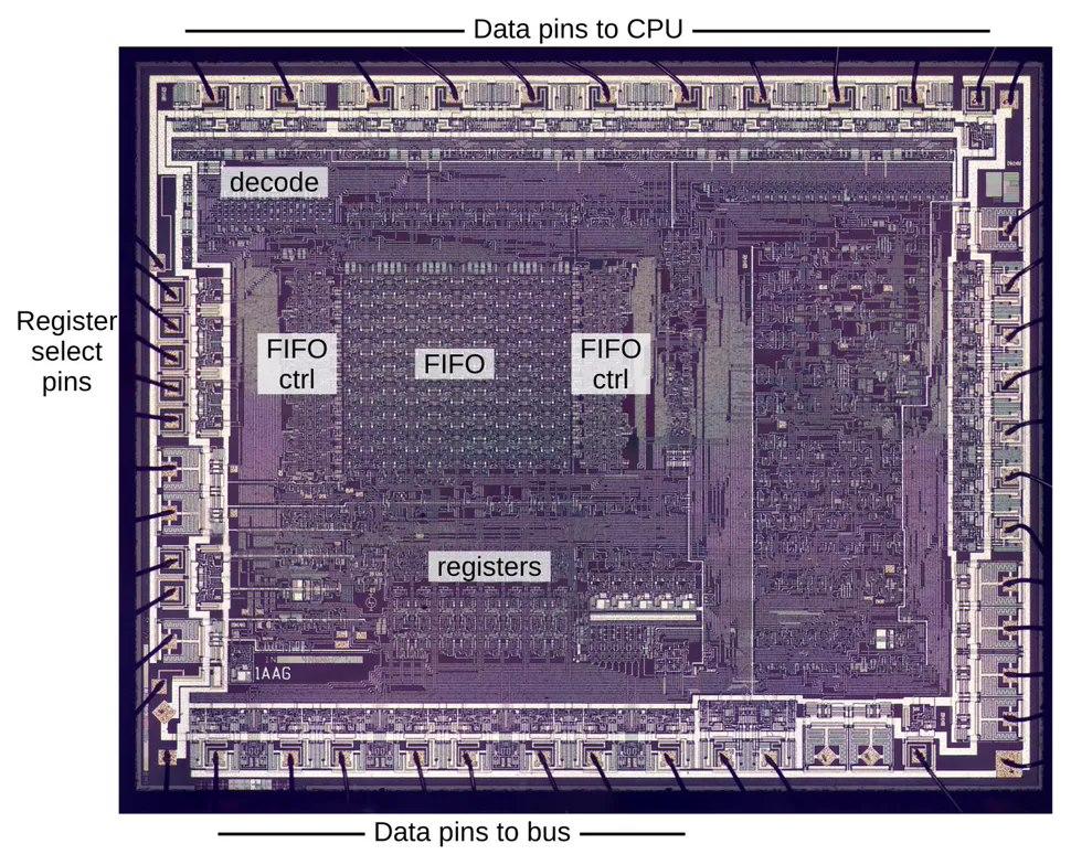令人意外的是,这块看似未来科技的芯片并不是什么超级计算机中的秘密武器,而仅仅是软盘控制器上的一个支撑组件,连接着惠普接口总线(HP-IB)和一个 Z80 处理器。