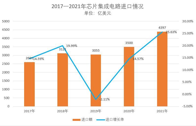 按照海关的数据,2021年我国进口集成电路6355亿个,同比增长16.9%,而进口集成电路的金额约4400亿美元,这也是有史以来第一次超过4000亿美元,可以说是创下了一个新的历史纪录。