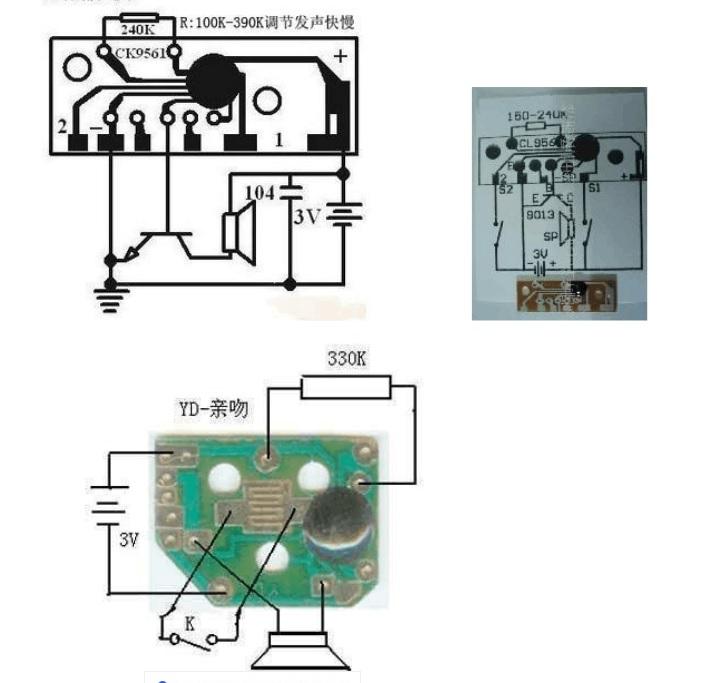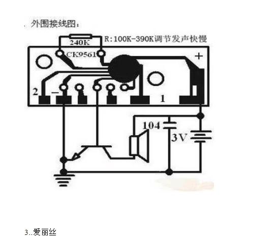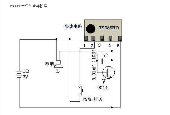 昨天朋友突然急要一个音乐芯片的接线图,咱也没有,只好从网上搜集了些,想想看既然收集了,就一并分享出来,看有用得着的话,也算是做回雷锋把,话不多说下面上图,觉得有用的就收藏吧。