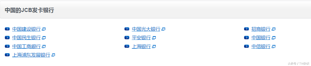 JCB卡在国内的另一部分权益由合作发卡行负责,目前与JCB联合发卡的主要有一下几家银行。