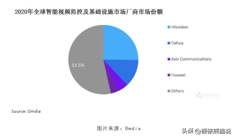根据安防调研机构Omdia的一份报告推测,2020年,全球智能视频监控市场份额中,华为闯进前四,排在海康威视、大华股份和安迅之后。