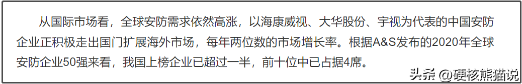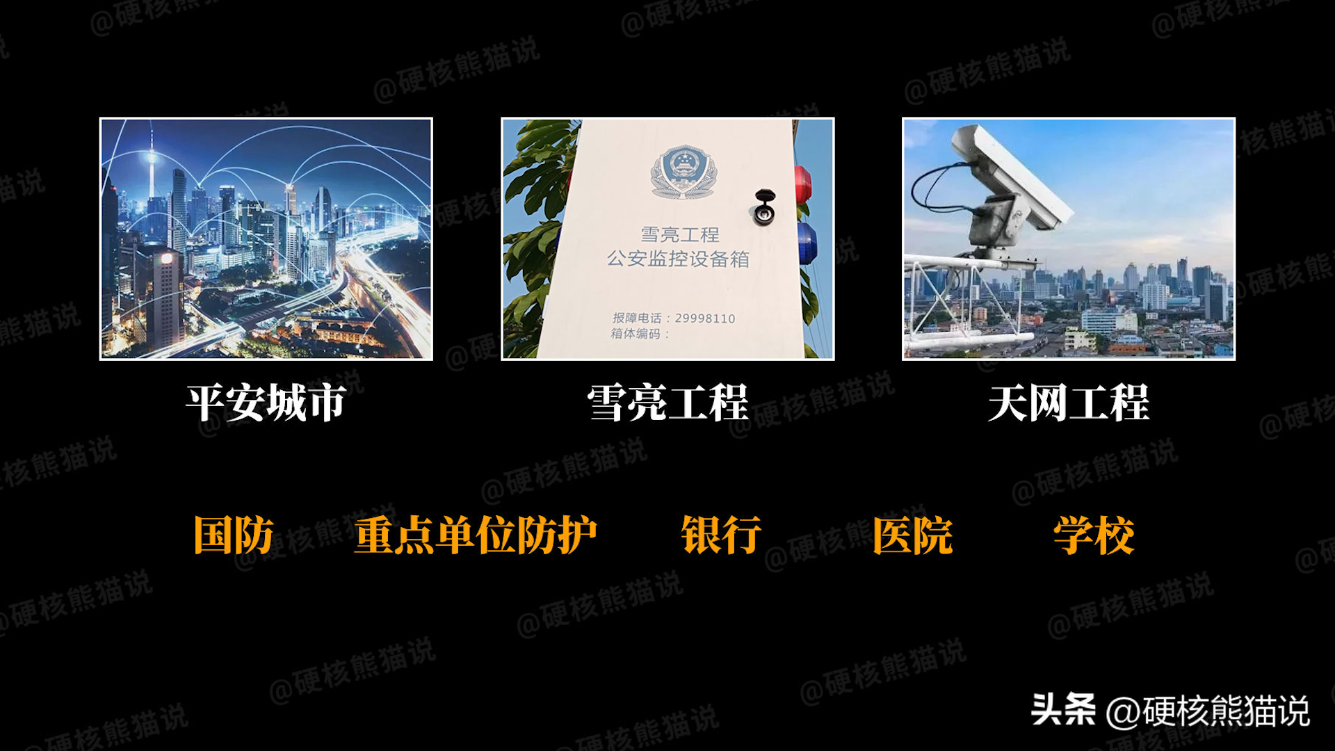 安防大部分人可能看不上,但是国家已经通过“平安城市”“雪亮工程”以及“天网工程”,将整个社会融入进安防里,大到国防、重点单位防护、小到银行、医院、学校等基础单位设施,都离不开安防。