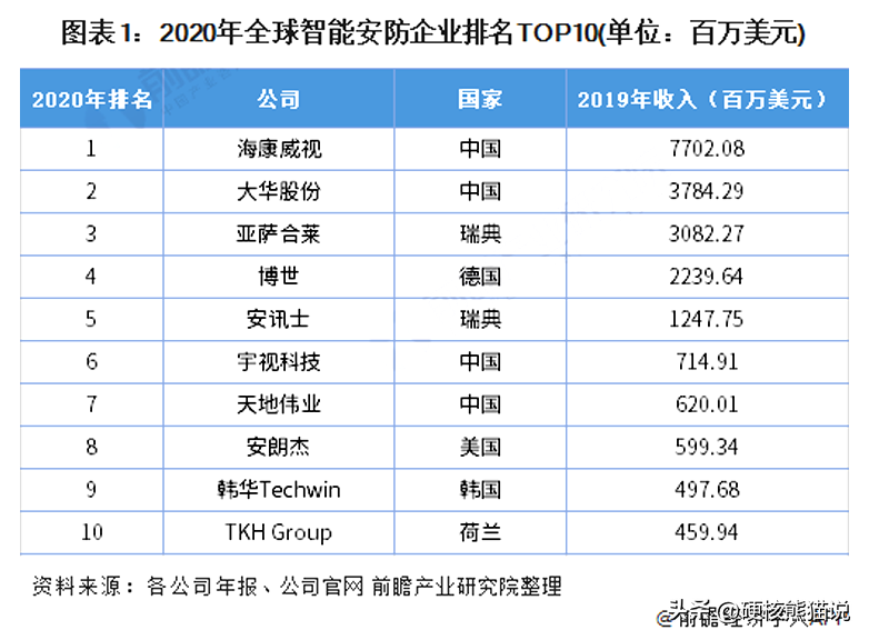在安防业内有个“二超多强”的说法,说的就是:先海康和大华,之后才是其他企业,而其他企业里还有一堆中国安防企业。