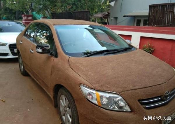 图为被“镀粪”的印度车
