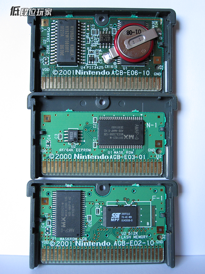 三种GBA卡带,这个时期闪存芯片和记忆电视同时被运用
