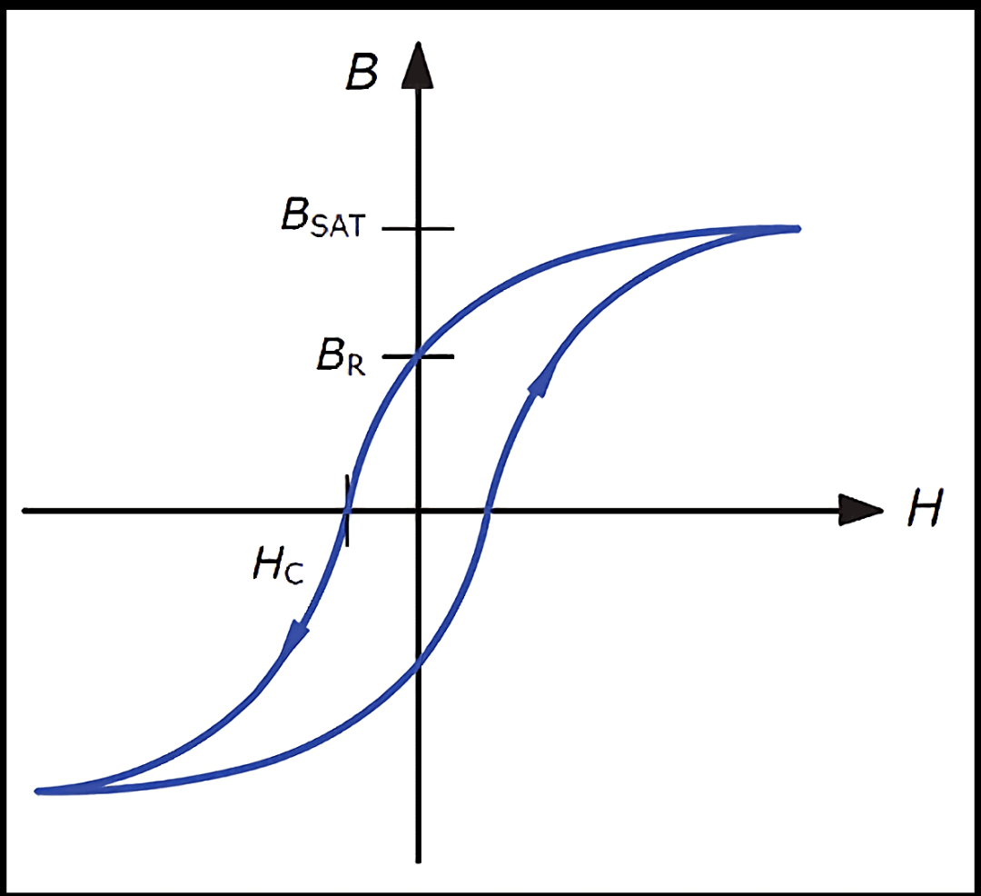 电感磁芯每磁化一周期,就要损耗与磁滞回线包围面积成正比的能量,频率越高,损耗功率越大,磁感应摆幅越大,包围面积越大,磁滞损耗越大。