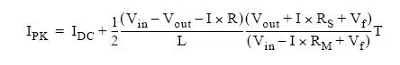 其中,Rs为感应电阻阻抗加电感绕线电阻的阻。Vf 是肖特基二极管的正向压降。R是Rs加MOSFET导通电阻,R=Rs+Rm。