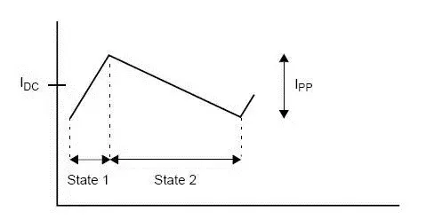 单独拉出其中一个周期做分析,如图4,状态1时,电感上的电流会慢慢增加;状态2时,电感上的电流就会慢慢减小。具体电感的电流如下所示: