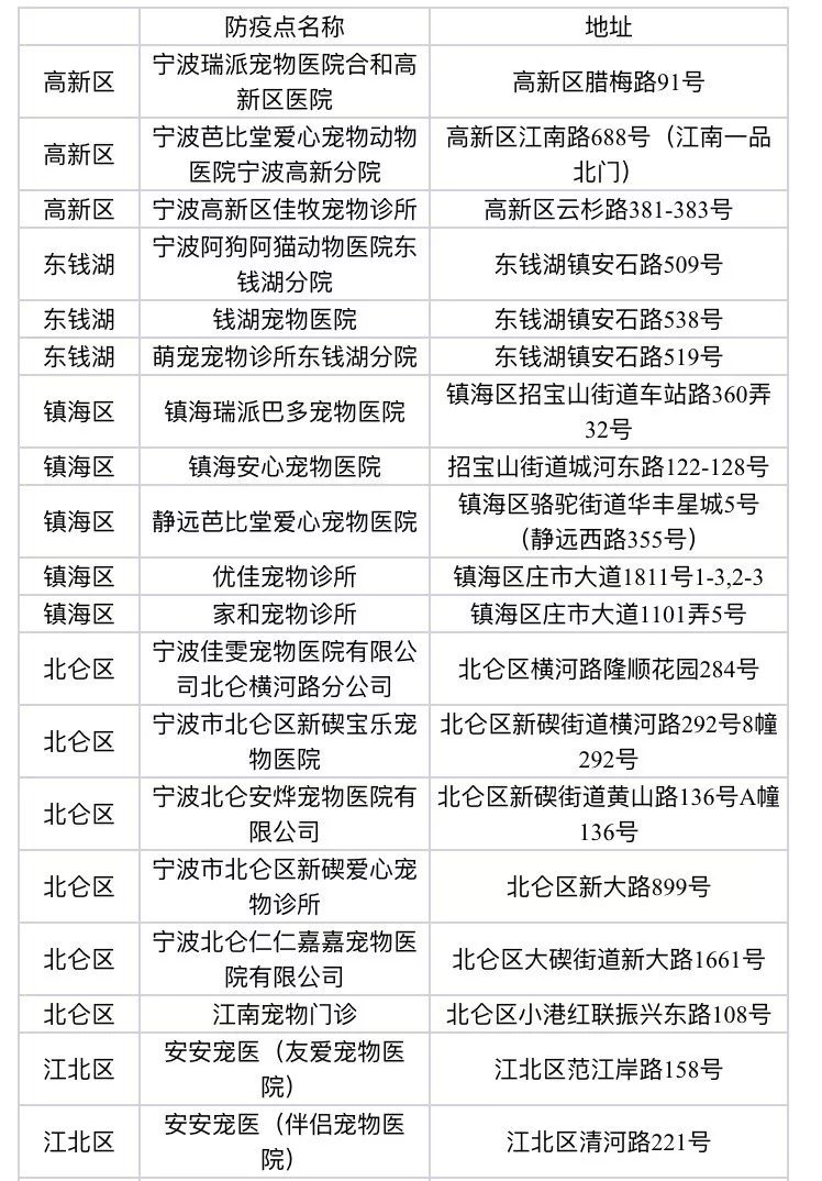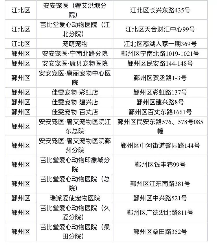 犬类注射医院汇总表