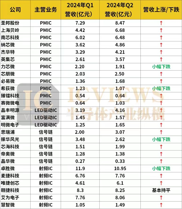 从表格中的数据可以看出,大部分公司在 2024 年 Q2 的营收相比 Q1 呈现上涨趋势或基本持平,仅有少数公司出现小幅下跌。