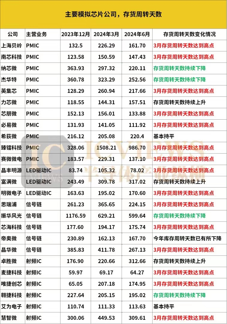 而第二季度库存的明显下降,可能是企业积极应对库存积压问题的结果。企业可能采取了多种策略,如减少生产计划、加大营销力度以促进销售、调整产品价格来提高市场竞争力等。同时,也可能是第二季度市场需求有所回暖,例如新兴技术领域对模拟芯片的需求增加,使得库存得以消化。不过,仅根据目前的数据还不能完全确定这些公司的库存情况是否已经达到理想的健康状态,还需等待Q3各厂商的存算周转天数公布才能下定论。