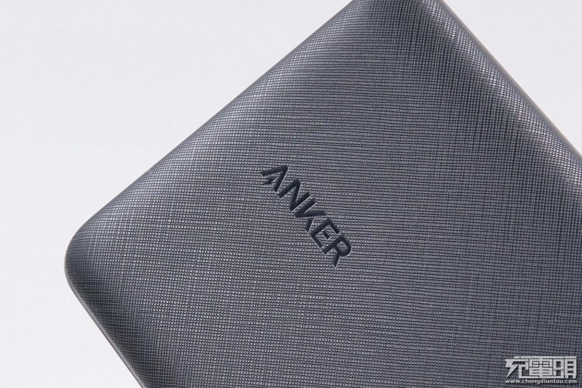 “ANKER”logo特写,表现的晒纹处理在增加美观度和手感上效果很好。