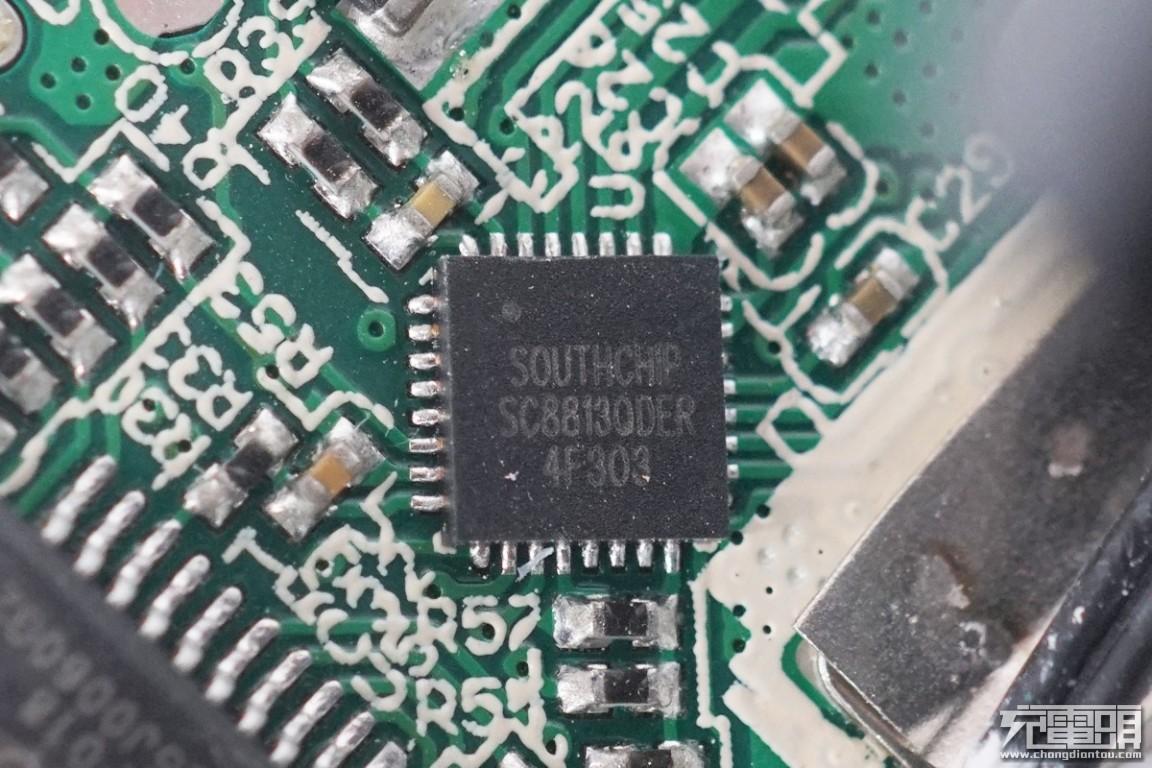充电头网通过拆解发现,这款移动电源封装非常的牢固可靠,内部采用南芯半导体SC8813主控芯片,赛普拉斯CYPD3171快充协议IC和天钰FP6601Q快充协议IC等,用料扎实。此外使用三颗QM2542N电池保护管和SOT23电池保护IC组成的电池保护板对电芯进行保护,电容和电感等均有注胶进行固定,数据脚均有ESD进行静电防护,更加提高可靠性。