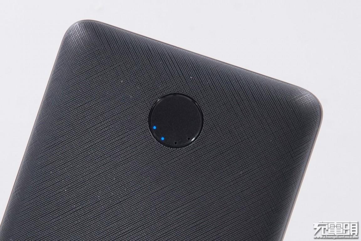 指示灯特写,左上角为PD快充指示灯和电量指示灯共享一个格子。