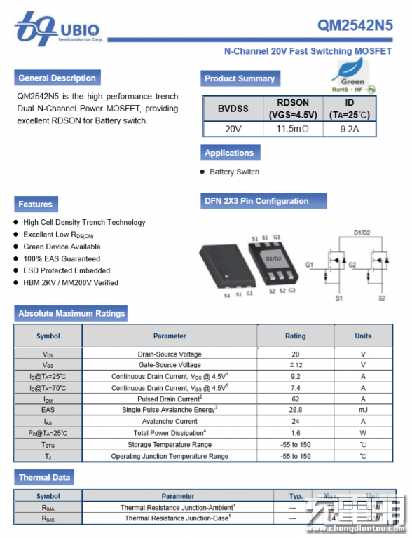 另外两颗QM2542N电池保护管。