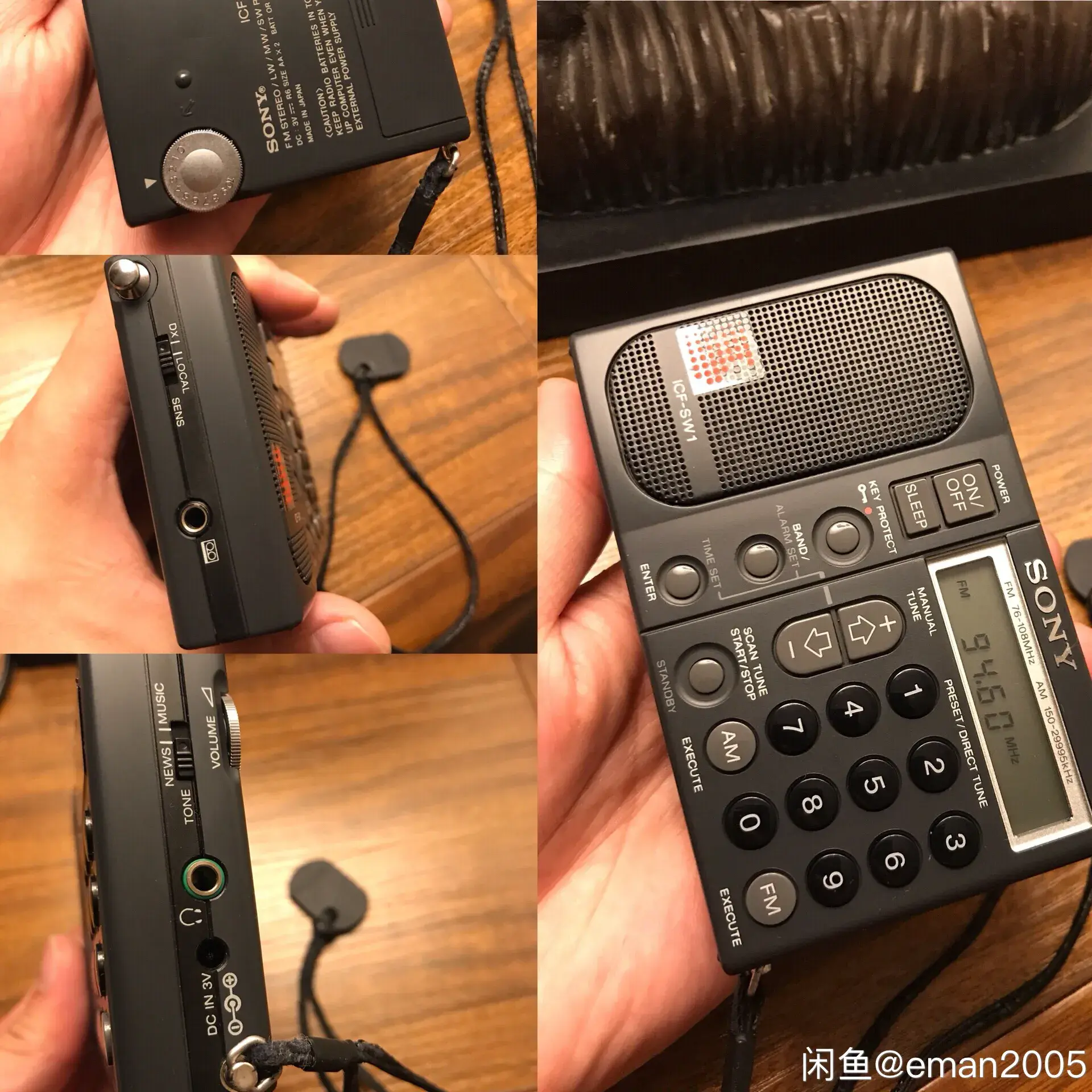 90年代东芝索尼三洋飞利浦等IC大厂的收音机芯片产品已经极其成熟和丰富,而且价格相对低廉,因此集成电路收音机也迎来了鼎盛时期,无论是国机还是洋机,各种机型层出不穷,尤其是洋机的高端机也大多诞生在这个时期。例如索尼数调全波段便携机型,就涌现了7600系列,SW55,77,07等高端机。SW1这台精美的迷你小机也是那个年代的产物,外形只比烟盒略大,可谓是最小巧的数调二次变频立体声全波段机,覆盖FM76-108Mhz,AM150-29999Khz以销售地不同而略微不同。该机有两个版本SW1S和SW1E,机器本身没区别,只是随机的附件不同而已,可以认为S是高配版E是乞丐版。高配版包括3V稳压电源,耳机和有源天线AN-101及放大器。该机体积虽小但是性能和使用体验并不差,是出差旅行,随身携带的好机。