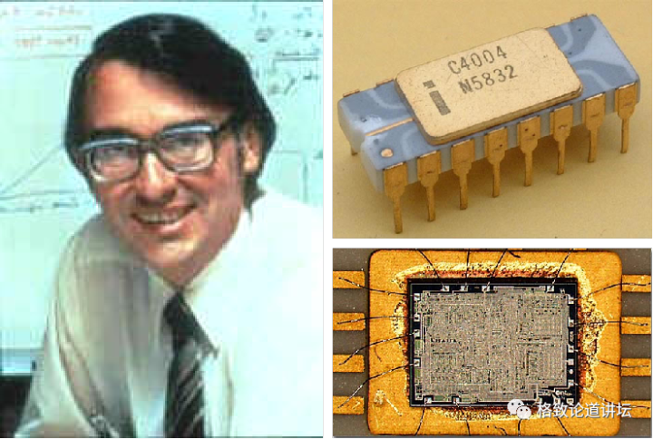 泰德·霍夫(Ted Hoff)(左)和世界上第一款微处理器——英特尔4004(右)