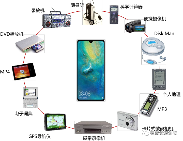 过去40年里,我们有太多的东西逐渐消失了。曾经人人都有科学计算器 ,今天已经没有人在用了。我们曾经骗家长说学英文、其实是听音乐的随身听 ,现在也已经消失了。我们曾经用便携式摄像机 给孩子录像,记录他们的成长过程,现在也逐渐淡出人们的视线。还有个人助理、MP3、卡片式照相机、磁带录像机、GPS导航仪以及电子词典 等等,这些东西都消失了。它们都进了手机,而手机的体积并没有发生根本性的变化。因为芯片太强大了,而且越来越强大。每过18个月,它的容量就翻一番,功能也就越来越强大。因此,我们总结了一句话:芯片能够参与竞争的任何技术,最终都不可避免地成为失败者。 如果发现某项技术已经被芯片做了,我们千万不要再去做,因为它最终会被芯片战胜,它一定成为失败者。