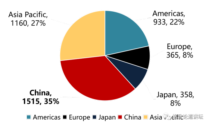 首先,中国是全球最大的单一半导体市场。 2020年,我们中国使用的芯片价值1515亿美元,占比是35%。全球生产的芯片每三块中就有一块是被中国消费的。
