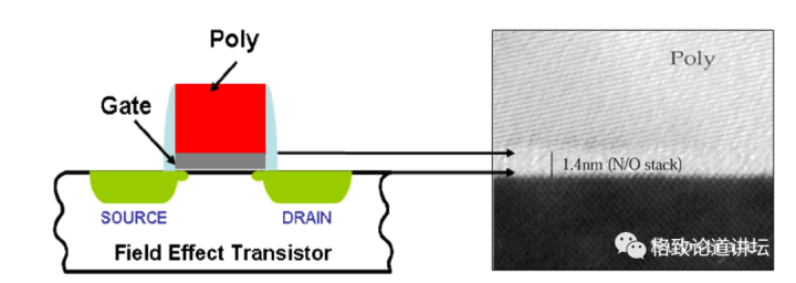 栅极氧化层示意图(左)和扫描电镜图像(右)