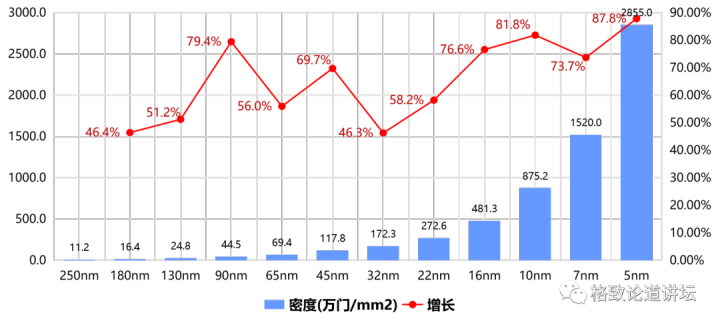 单个芯片上的晶体管密度指数攀升